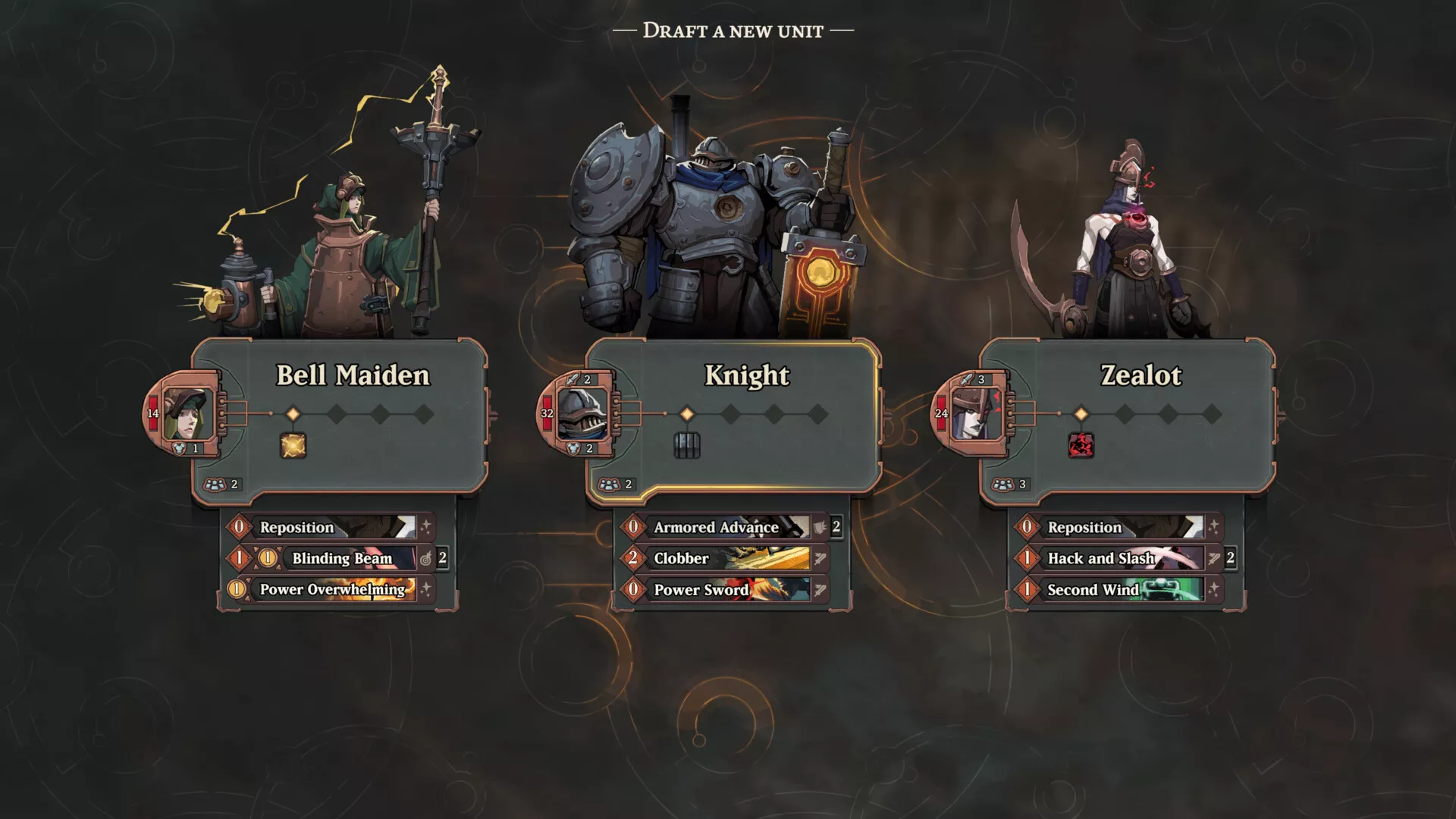 Recruit new squads of units by utilizing scavenged technology. Each squad is a unique archetype with its own set of cards which can be added, removed, and upgraded. Deploy the right composition of forces in order to tailor your deck for success against each battle encounter.