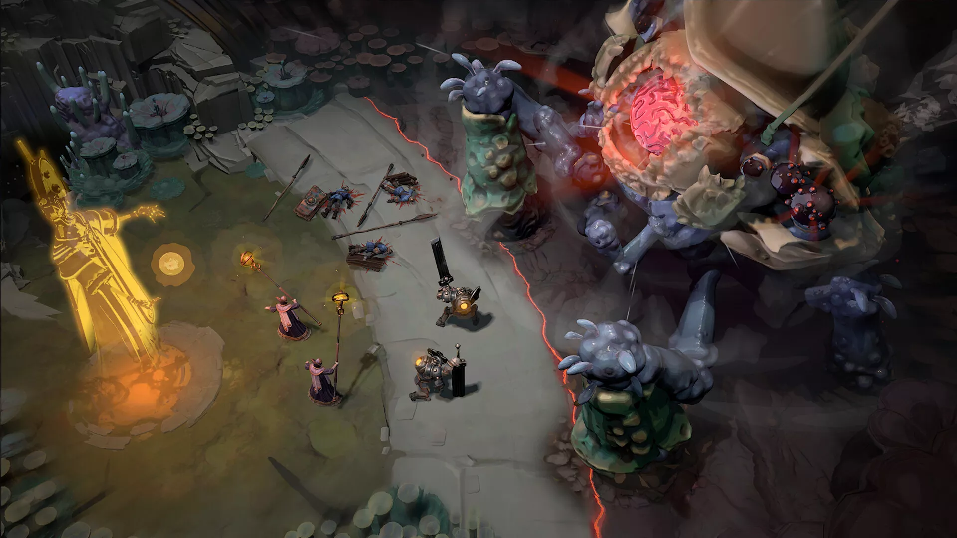 Against titanic enemies, you must rely on not just strength but wit. Adapt your tactics by reacting to enemy intents. Master the combat zone system: reposition your forces between the Guard Zone and the Support Zone in order to dodge enemy attacks and set up a defensive line.