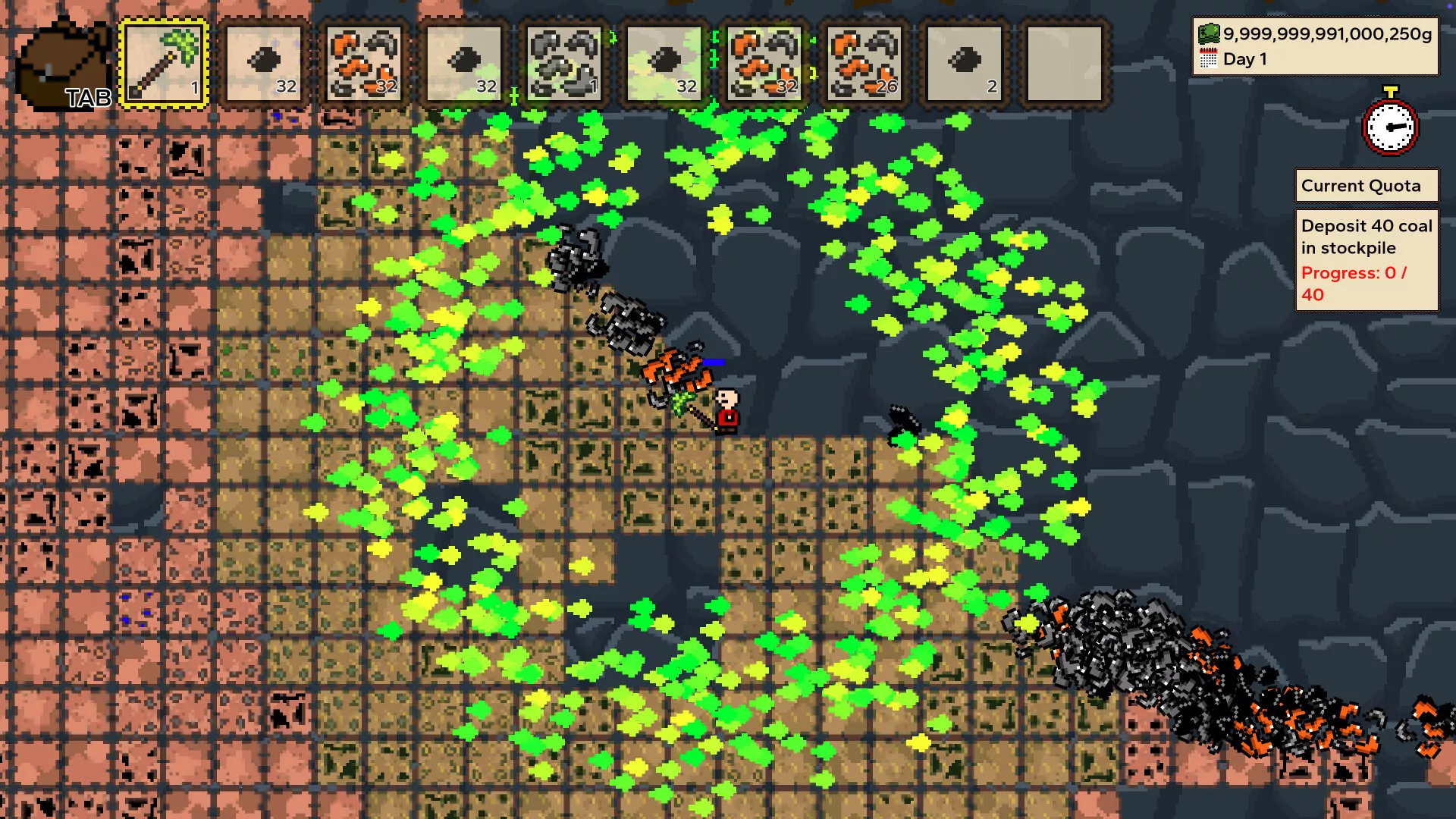 The underground world magically refreshes each day, so you must race to mine as much of it and as deeply as you can before nightfall. Using some very exciting and hyper-realistic methods for doing so. Your world might deteriorate as you grow, however.