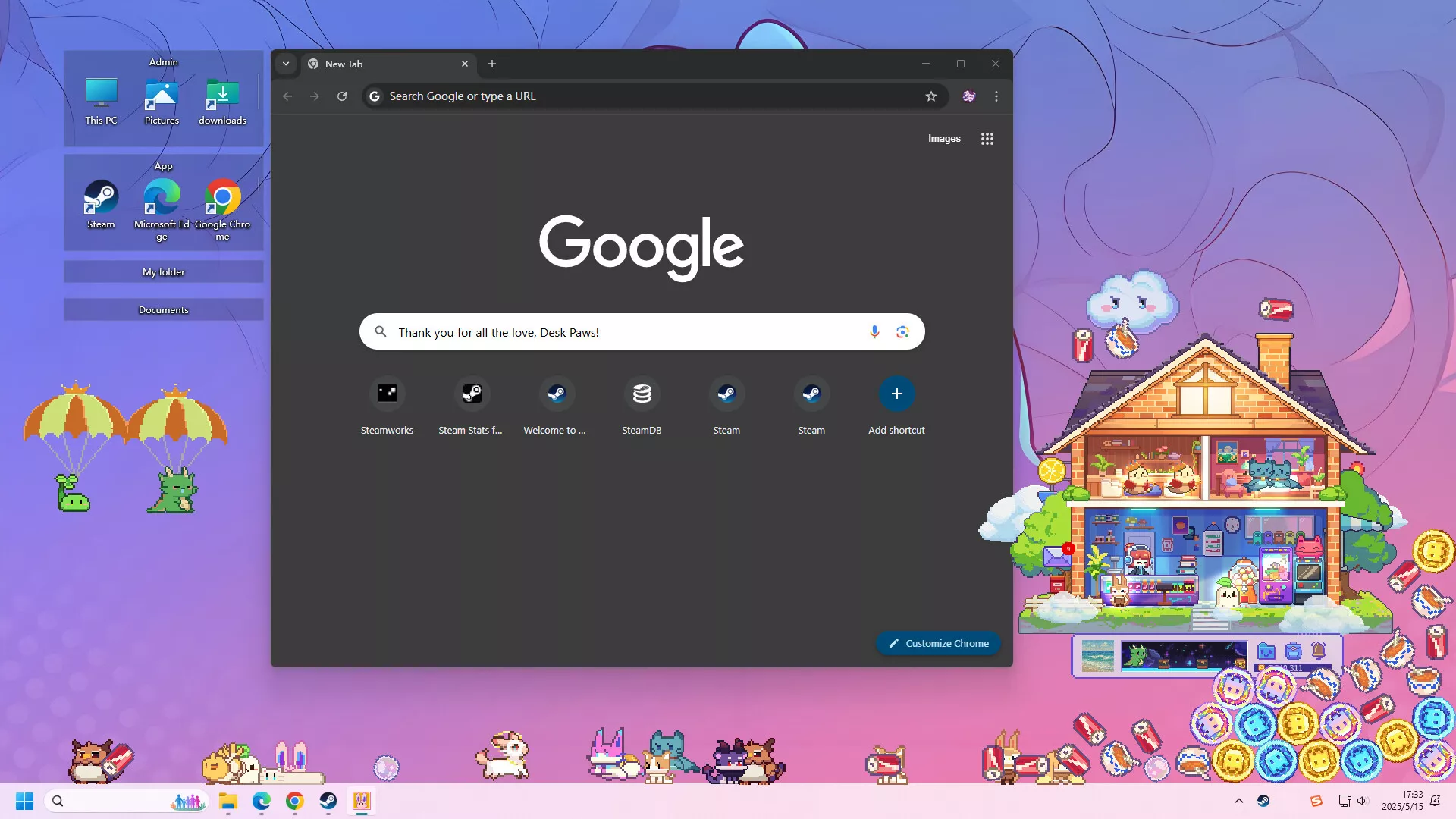Customizable position and size of houses, pets, UI, don't want them fixed to a certain spot on the desktop? Completely ok!
