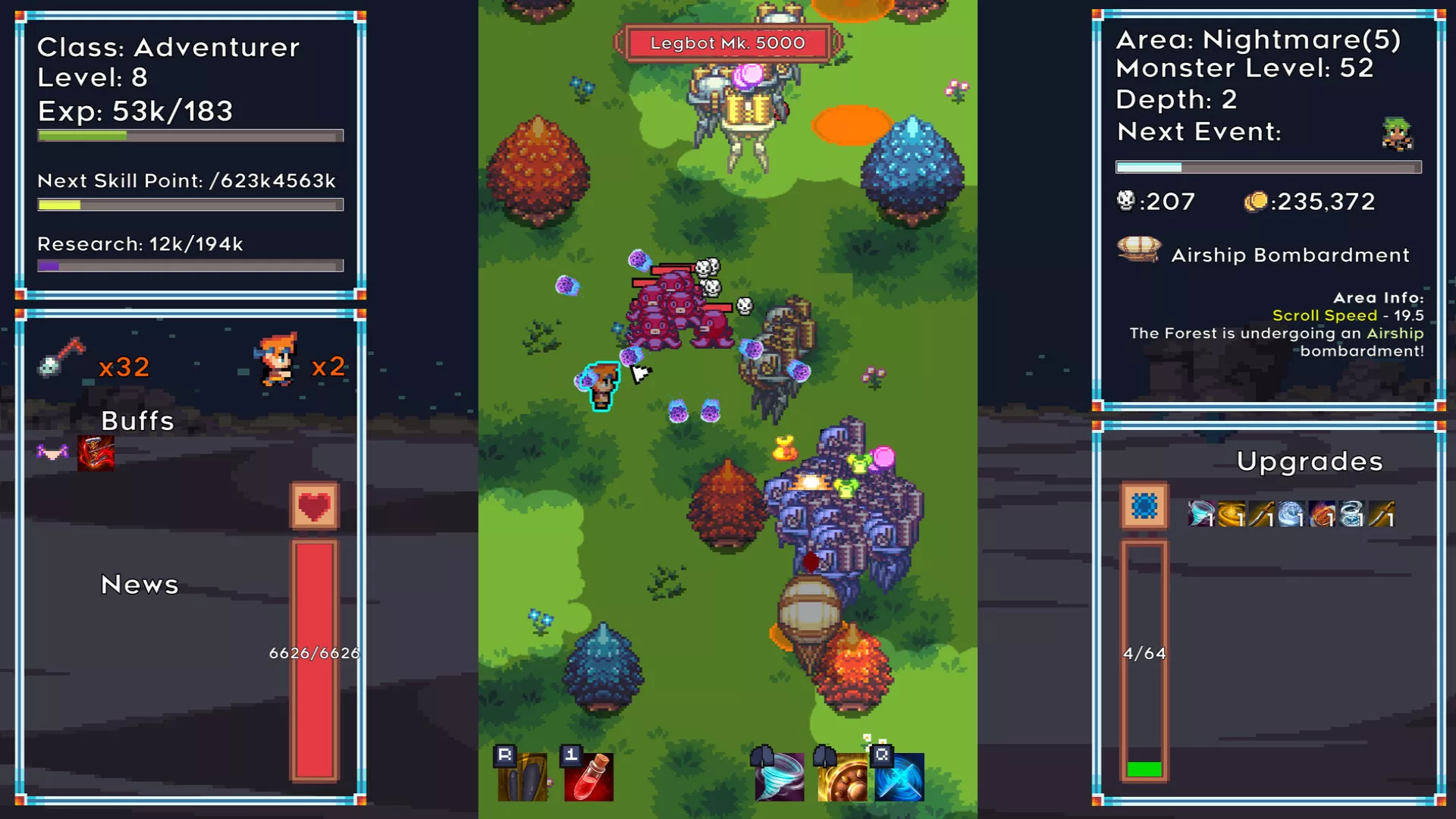Fight your way through infinite retro worlds. Collect tons of loot. Sell it. Grow in power. Then grow some more. There is no such thing as overpowered in Don't Die, Collect Loot, there's only stepping stones to greatness.