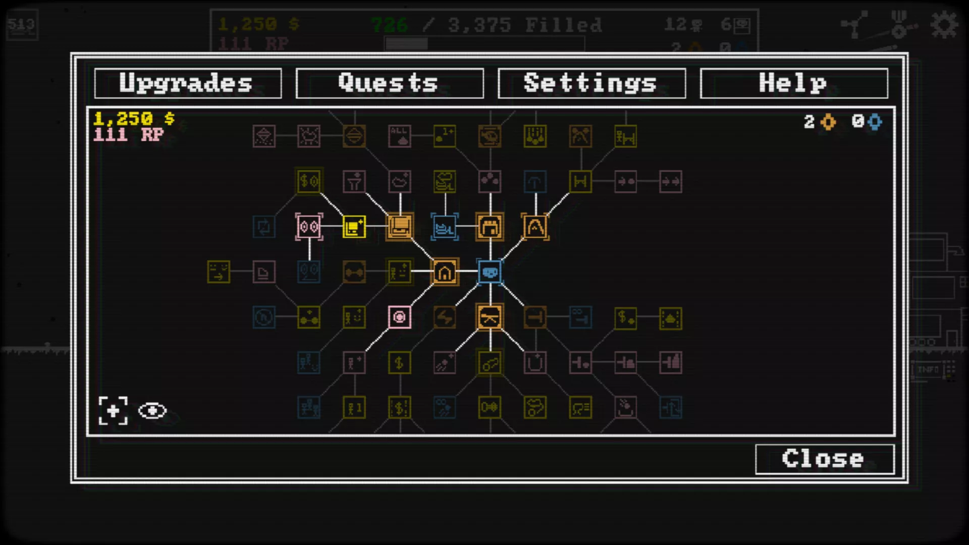 Skill tree of upgrades to explore