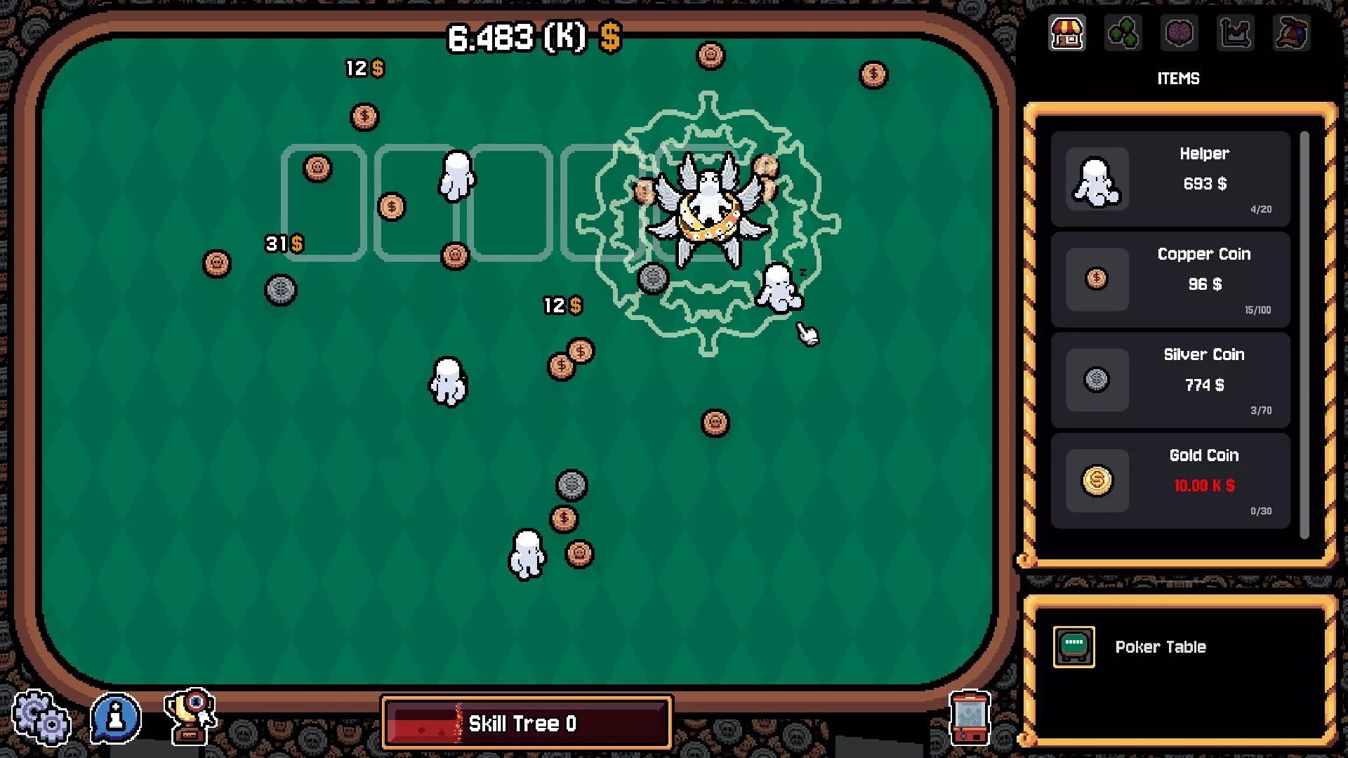 Gain talents that flip your previous strategy on its head! Unlock new coin types, stronger helpers or even divine intervention! Then sacrifice it all - leaving your fortunes behind and rising to something greater. Progress feels natural ... almost guided.