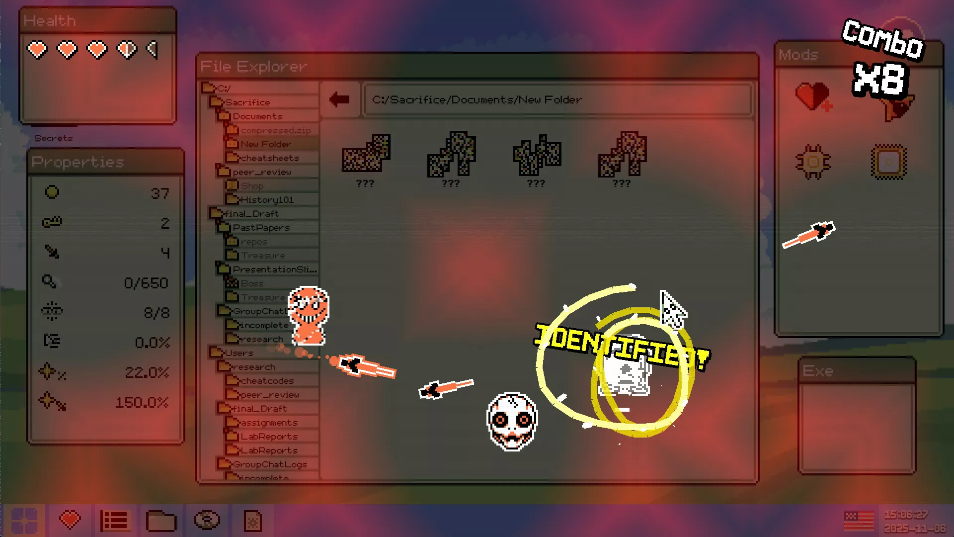 Identifile: Desktop Dungeon is a cursor-based action roguelike set inside your own infected operating system. It blends the frantic action of a bullet hell with the exploration of the file system.