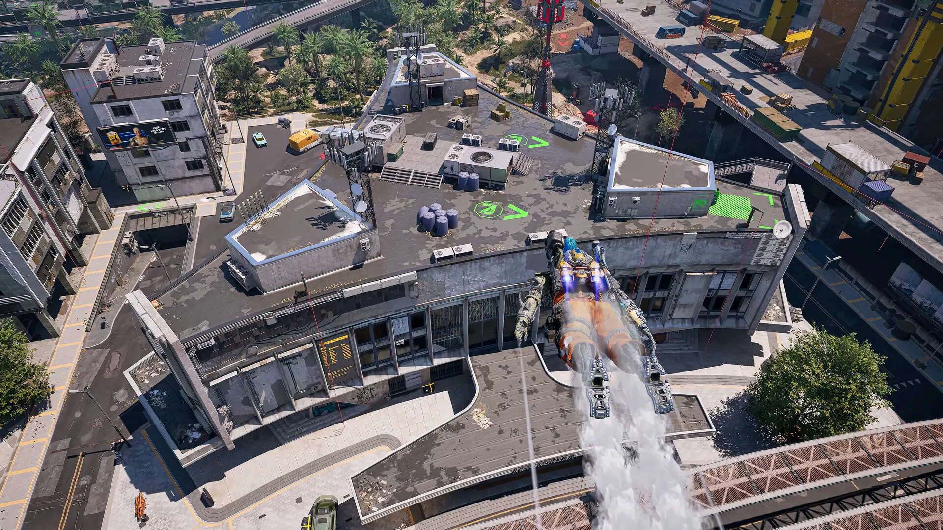 Off The Grid takes movement to the next level with a dexterous aerial movement system driven by advanced jetpacks. With strong utilization of the verticality of the maps players are able to both enter and exit fights rapidly, rewarding aggression and a fast-paced gameplay.